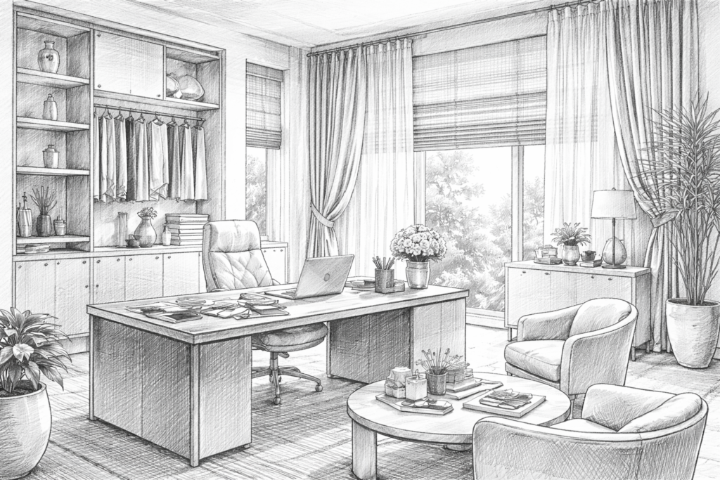 Είμαστε εδώ για να σχεδιάσουμε μαζί την ιδανική λύση σκίασης και διακόσμησης για τον χώρο σας, από την επιλογή υφάσματος και τύπου κουρτίνας, έως την εγκατάσταση τους και τις ειδικές κατασκευές.